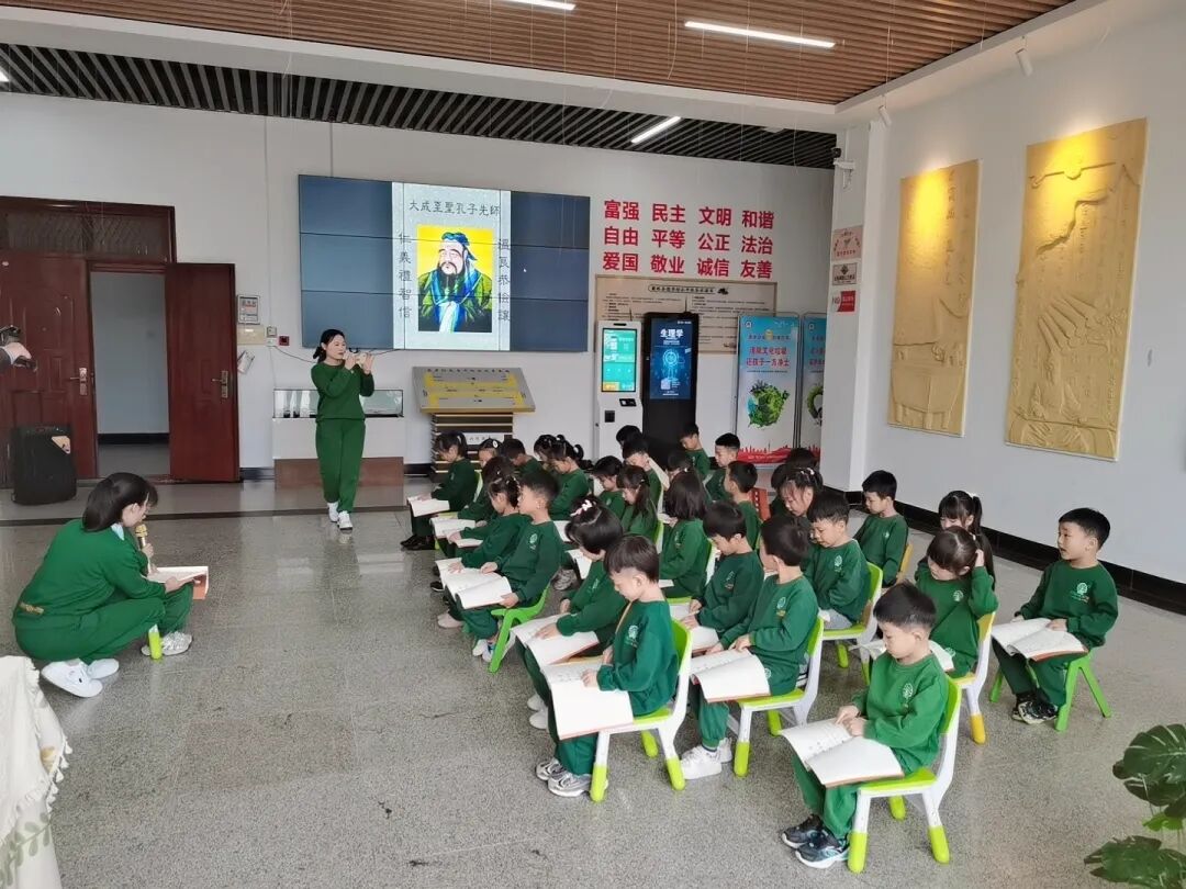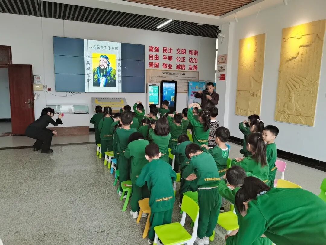 “不学礼,无以立。”孩子们满怀恭敬之心,跟随老师学习古代礼仪,拱手礼、揖礼、长揖礼,面向孔子像,恭诚肃立,向至圣先师行深揖三拜礼在抬手躬身中感受礼仪之邦的古韵,学习尊师重教的品德。齐声诵读论语,带领孩子们体味传统古诗词之韵,感受中华汉字之美。
