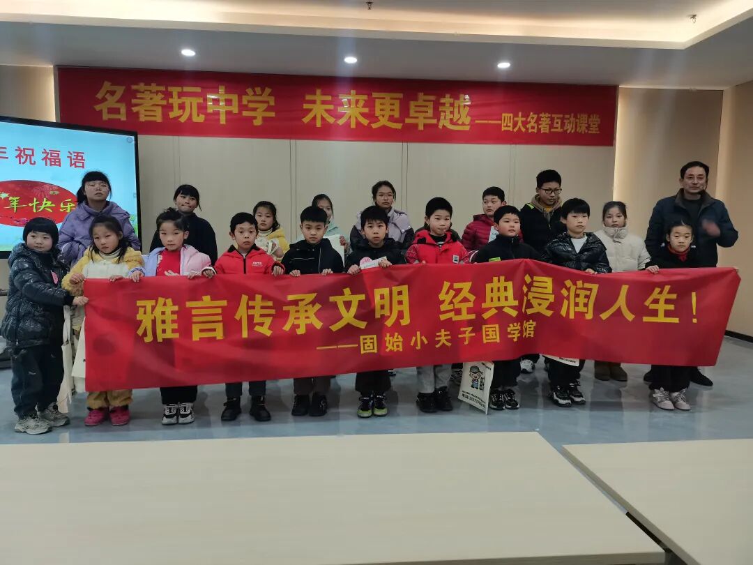 为让儿童走进名著、了解名著、喜爱名著、学习名著,在孩子幼小心灵里播种下中华文明的种子,塑造良好的品格,图好人生底色,从小培养孩子的民族自信心和自豪感。元旦期间,固始县图书馆联合小夫子国学馆在一楼读者沙龙开展名著互动课堂活动。