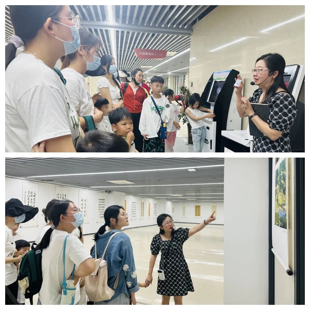 图书馆工作人员带领小朋友们参观了图书馆,重点介绍馆藏文献、自助设备、书画长廊、少儿阅览室等,并向大家介绍了图书馆服务内容,鼓励大家走进图书馆打卡阅读。