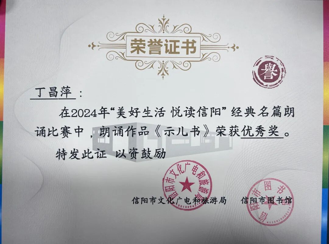 固始县图书馆2024年按照《关于印发〈信阳市文化广电和旅游局2024年“美好生活 悦读信阳”经典名篇朗诵比赛活动方案〉的通知》,认真研究组织策划举办了固始赛区比赛。通过预赛、决赛选出少儿组及成人组一等奖,并代表固始县参加信阳市总决赛,在活动中表现突出,获得佳绩。
