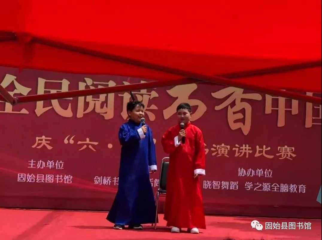 知识改变命运,阅读陶冶生活。2019年6月1日上午9点,在红苏路剑桥书店门口,由固始县图书馆主办,固始剑桥书店、金话筒教育承办,晓智舞蹈学校、学之源全力协办的【全民阅读·书香中国】县“庆六一”读书演讲比赛隆重举行!信阳市作协副主席、固始作家协会主席李庆华,图书馆馆长竹安珉,副馆长李剑、曹青,固始县朗诵协会理事祝艳利出席本次活动。