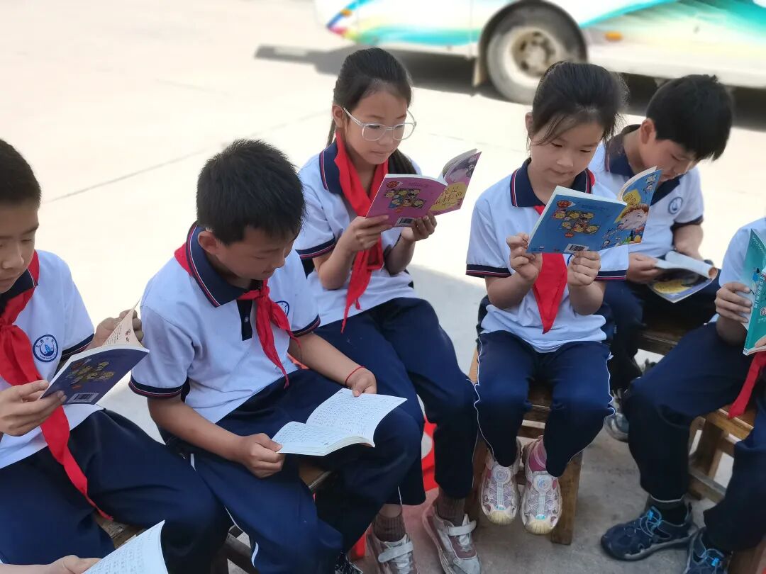 图书馆在流动车上准备了400多册适合不同年龄段学生阅读和学习的书籍,包括儿童绘本、小学必读经典文学作品、百科知识、科普读物、文学名著、红色故事等等。在大课间时间,学生们纷纷走到车上,挑选自己喜欢的书籍进行阅读,并且还分享了自己的阅读感悟。