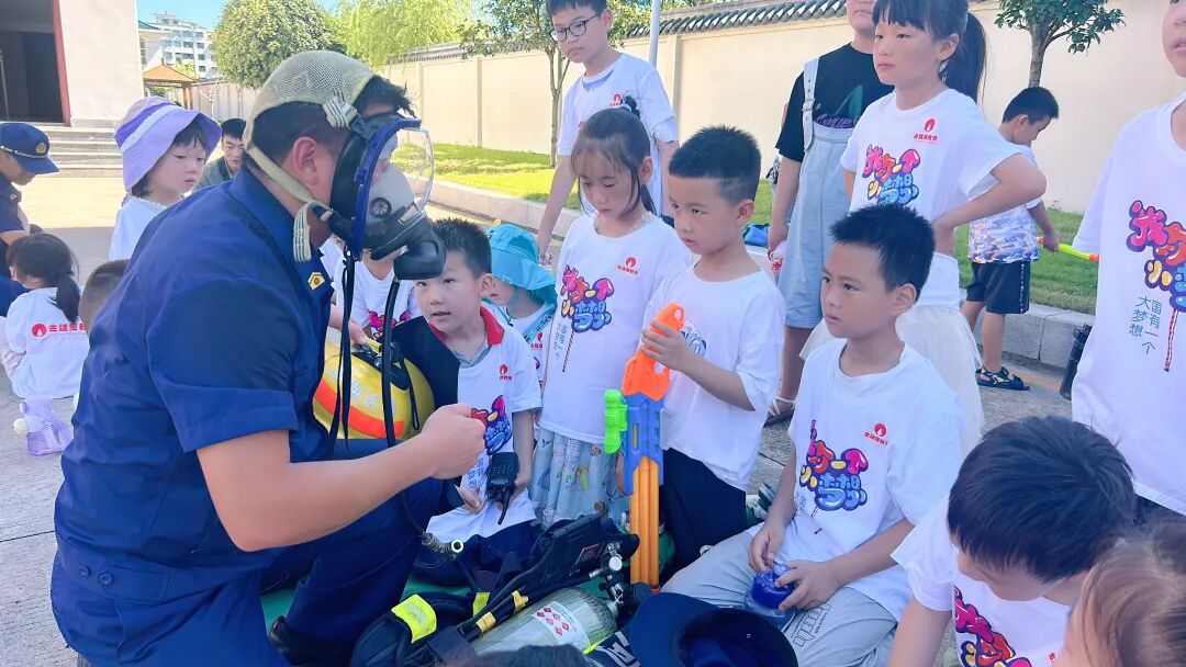 为了提高孩子们的消防安全防范意识和能力,普及孩子们的消防安全知识,增强孩子们的自防自救及社会实践能力,以及迎接即将到来的八一建军节,2024年7月29日上午,固始县图书馆联合固始县金话筒教育走进固始县消防救援大队开展“图书送进消防队 书香浸润火焰蓝”主题活动,参观实践,认识消防器材,学习消防知识,与消防员叔叔近距离接触,感受消防员叔叔的风采。