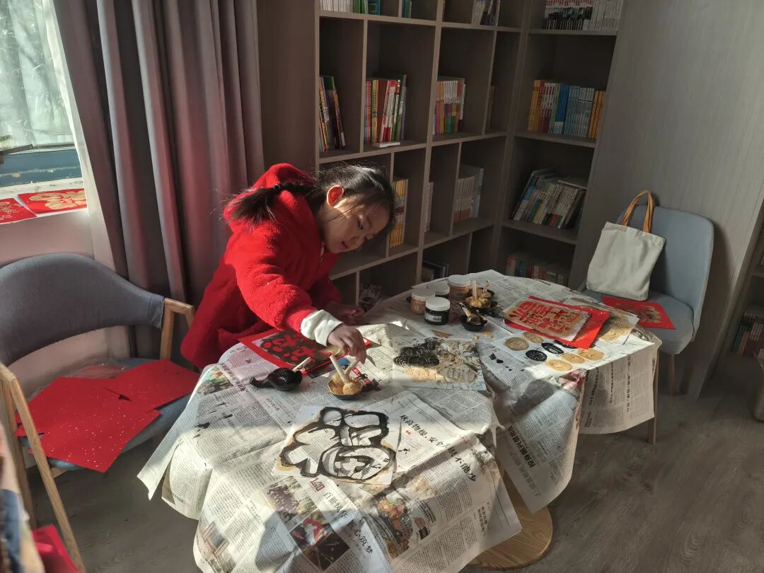 以蛇年为背景,通过福卡拓印的形式,让孩子们在动手实践中感受传统文化的魅力。在活动中,准备了各种材料和工具,如福字模具、金色墨汁、红纸等。孩子们通过亲手蘸取墨汁、按压模具,成功拓印出了一个个精美的蛇年福字。这些福字不仅形态各异,还蕴含着新的一年美好的寓意和祝福。