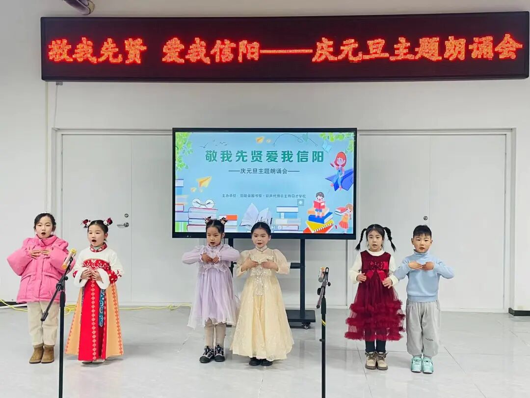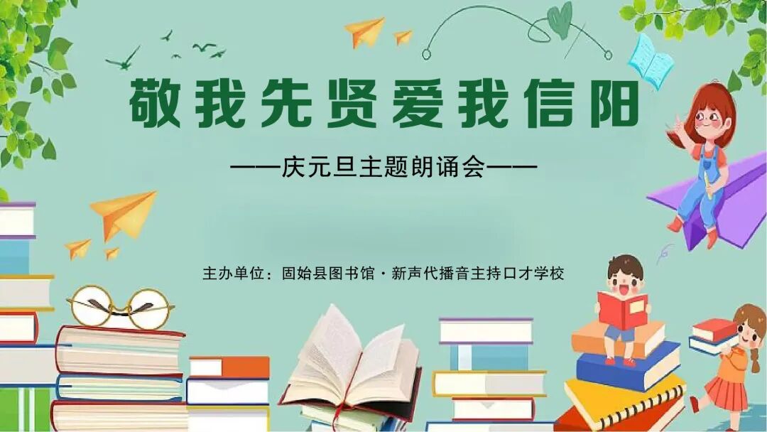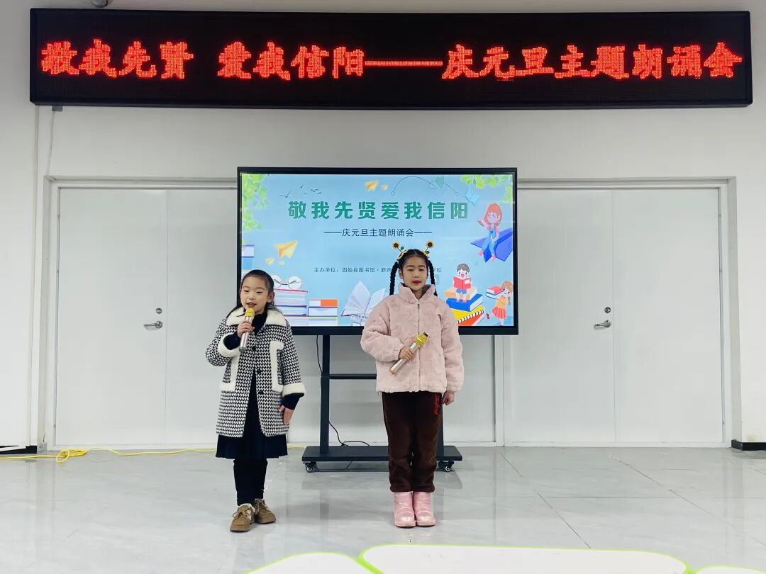 岁月更迭,时光的车轮又留下了一道深深的印痕。伴随着冬日里温暖的阳光,2025年即将如约而至。为庆祝新年的到来,丰富广大读者的文化生活,提升图书馆的文化氛围,12月29日下午,固始县图书馆联合新声代播音主持口才学校在少儿阅览室开展“敬我先贤 爱我信阳”元旦主题朗诵会活动。