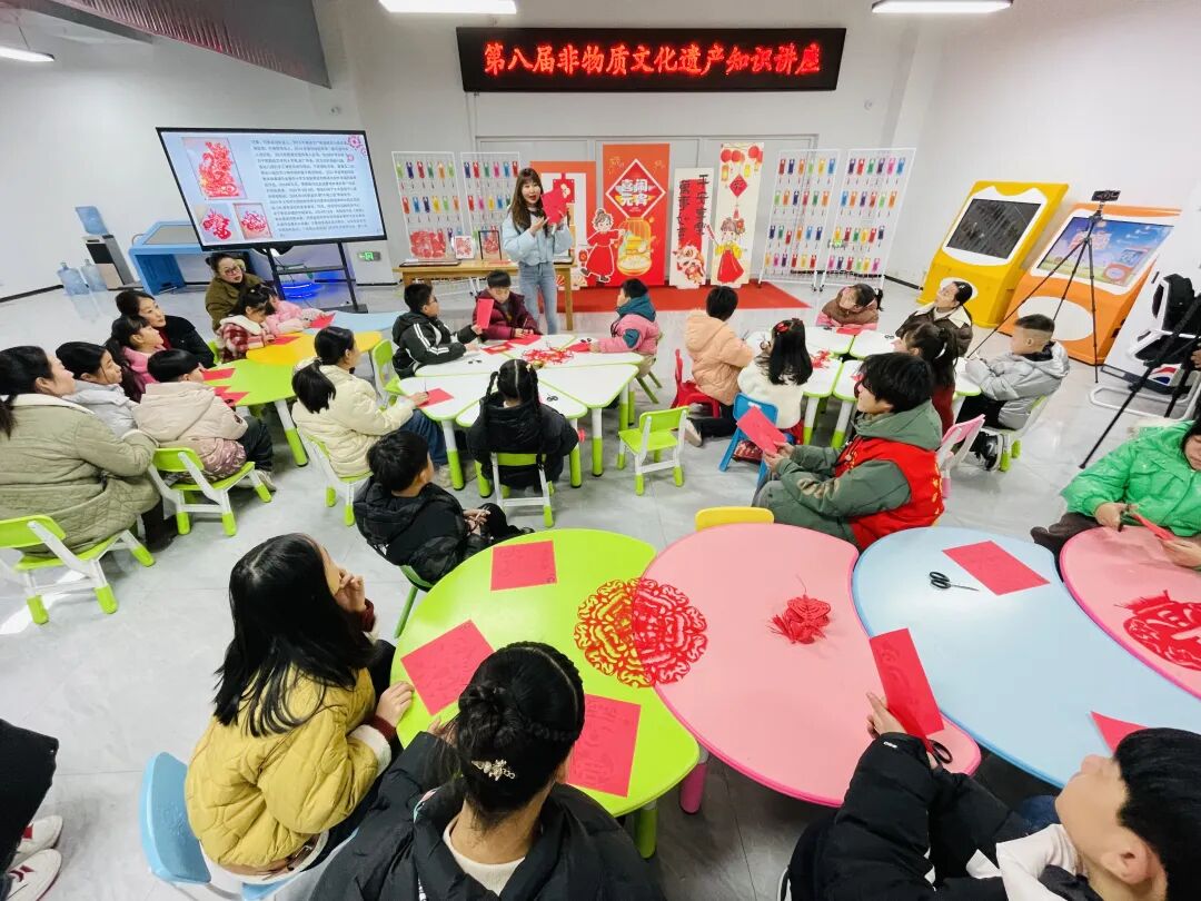 固始县图书馆特别邀请我县非物质文化遗产传承人汪蕾前来参与本次活动,汪老师认真讲解了剪纸的来源、文化内涵、制作技巧等。一个个漂亮的剪纸作品在老师手里慢慢浮现出来,栩栩如生,令大家赞不绝口。引得现场的孩子们跃跃欲试。随后,老师手把手地指导小朋友进行剪纸创作,孩子们全神贯注,用心描绘出心中的美好世界。