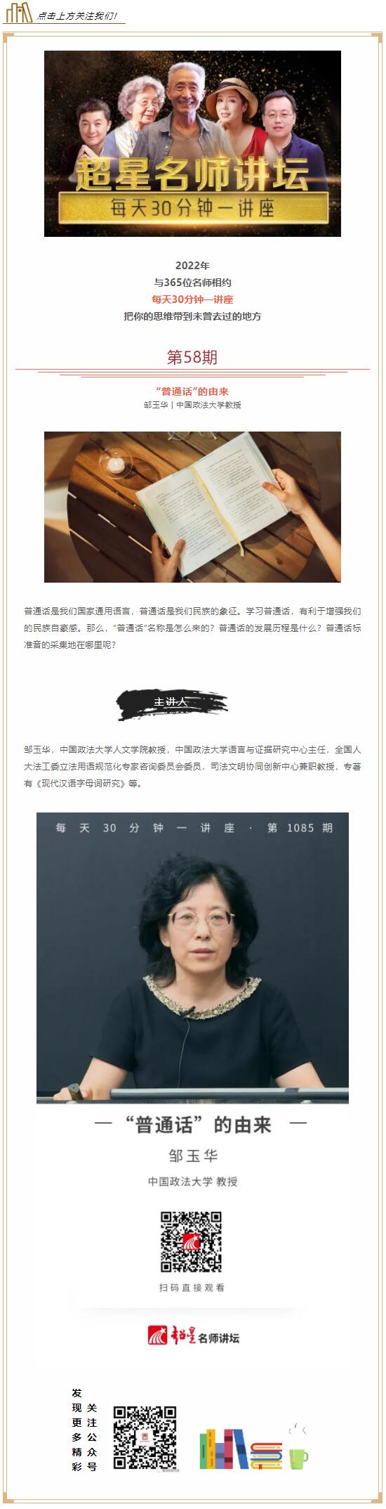 超星名师讲坛||每日一讲58:邹玉华:“普通话”的由来